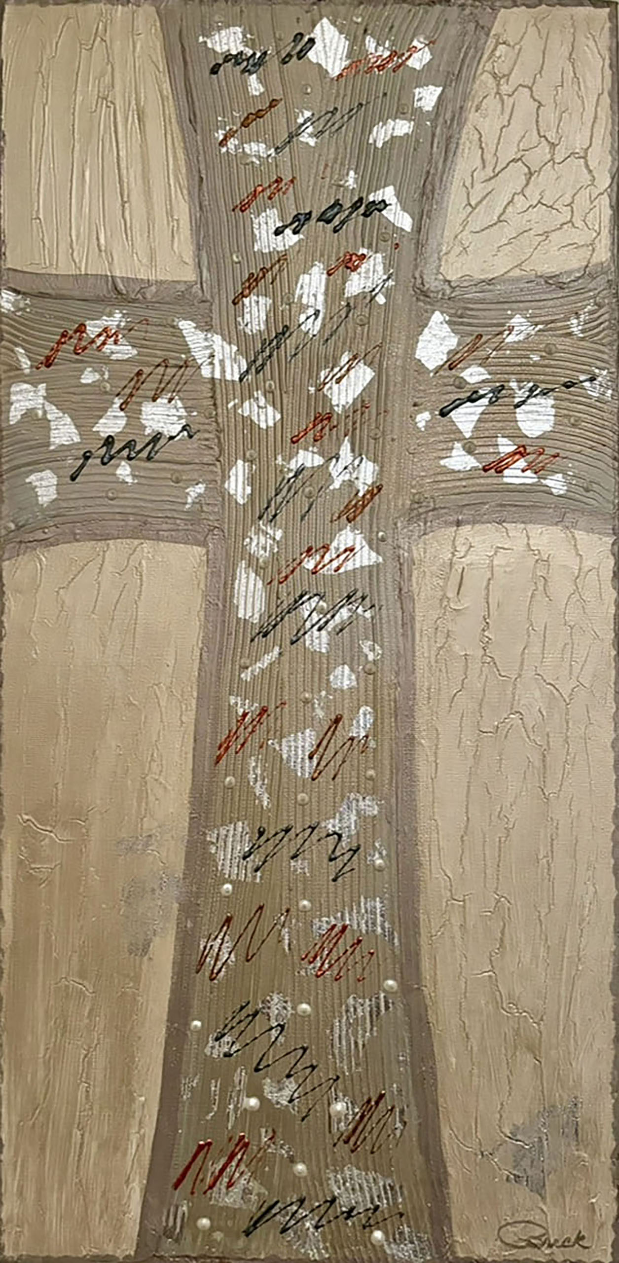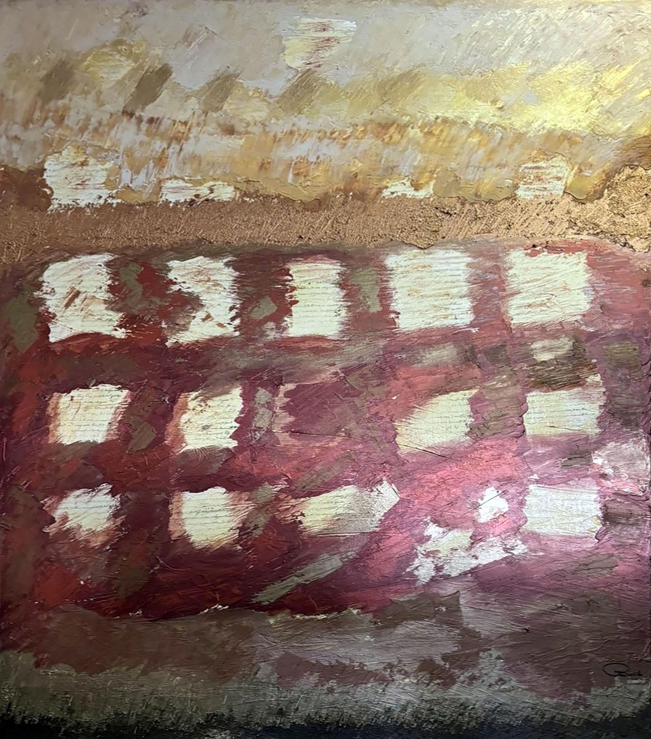 0030 Abstract Sand Dunes at Beach 24x18" original mixed media acrylic on art paper and linen canvas 3D detail