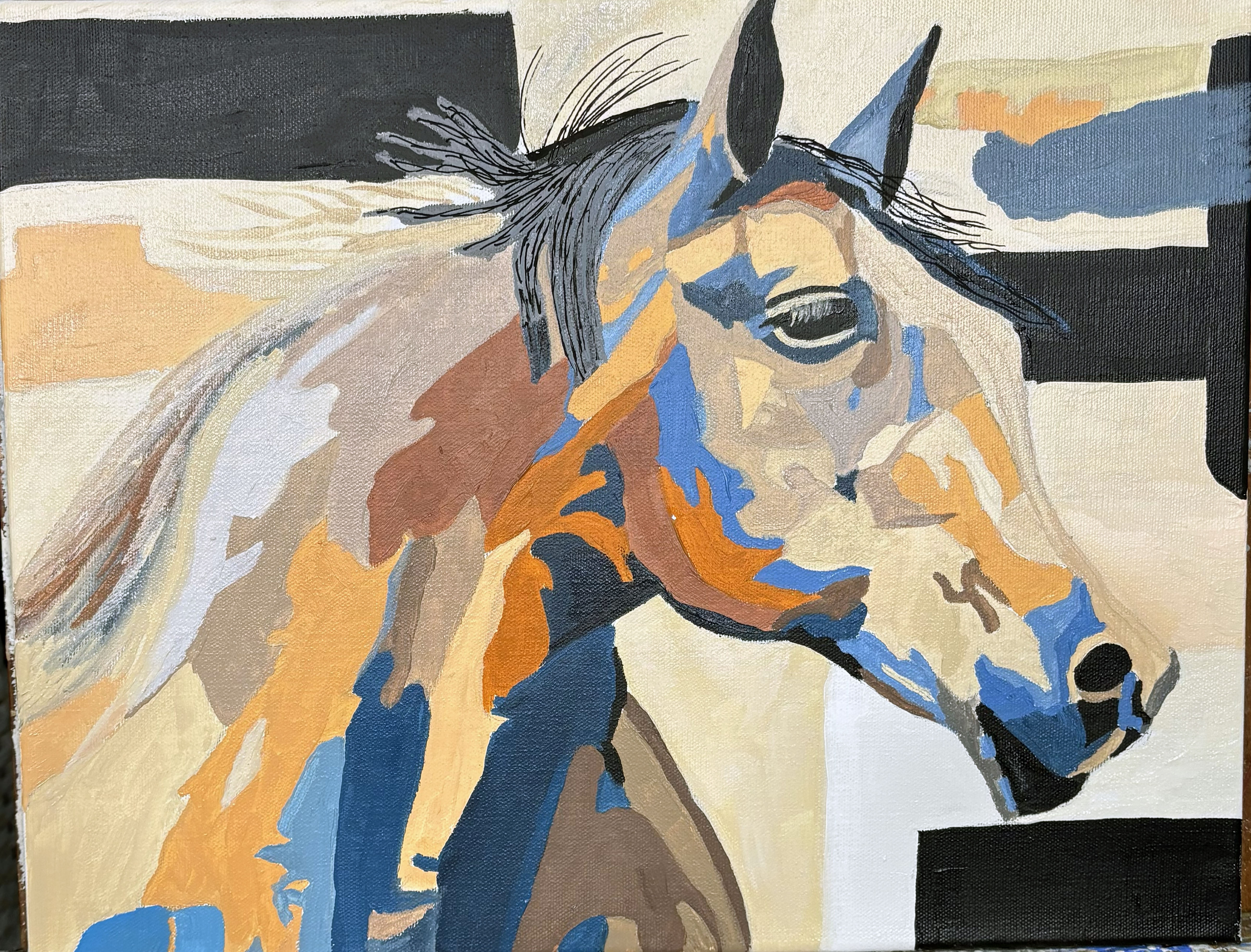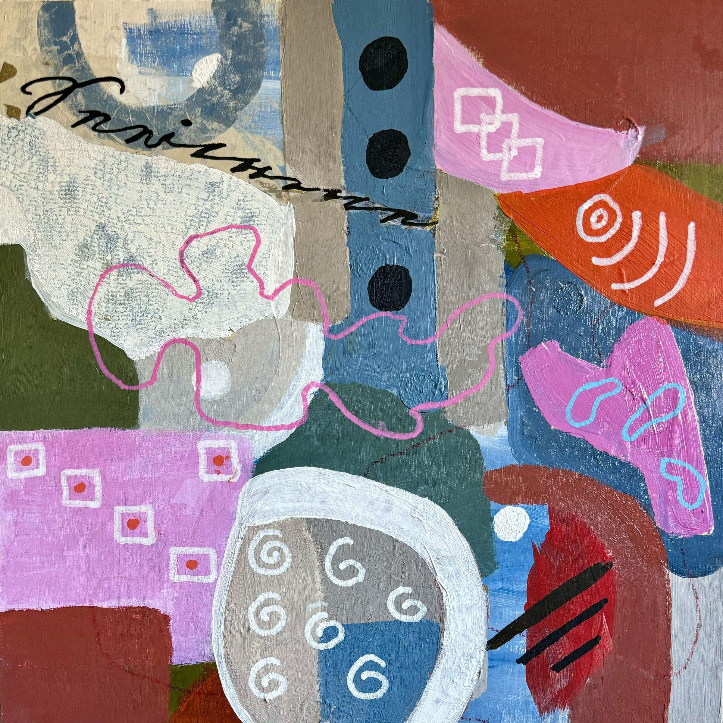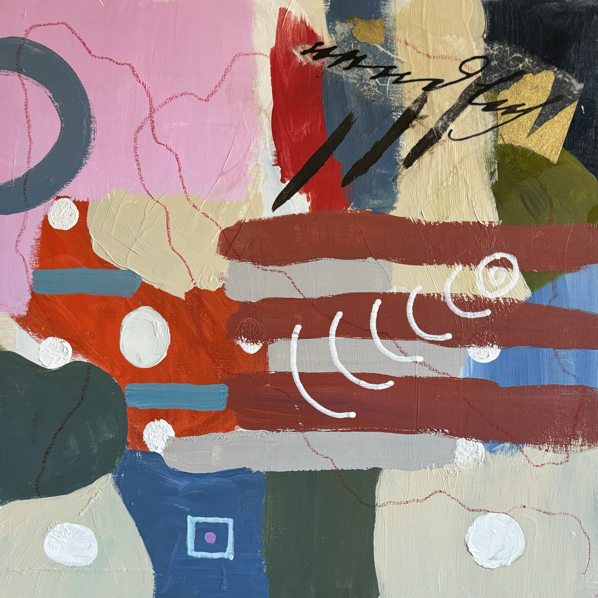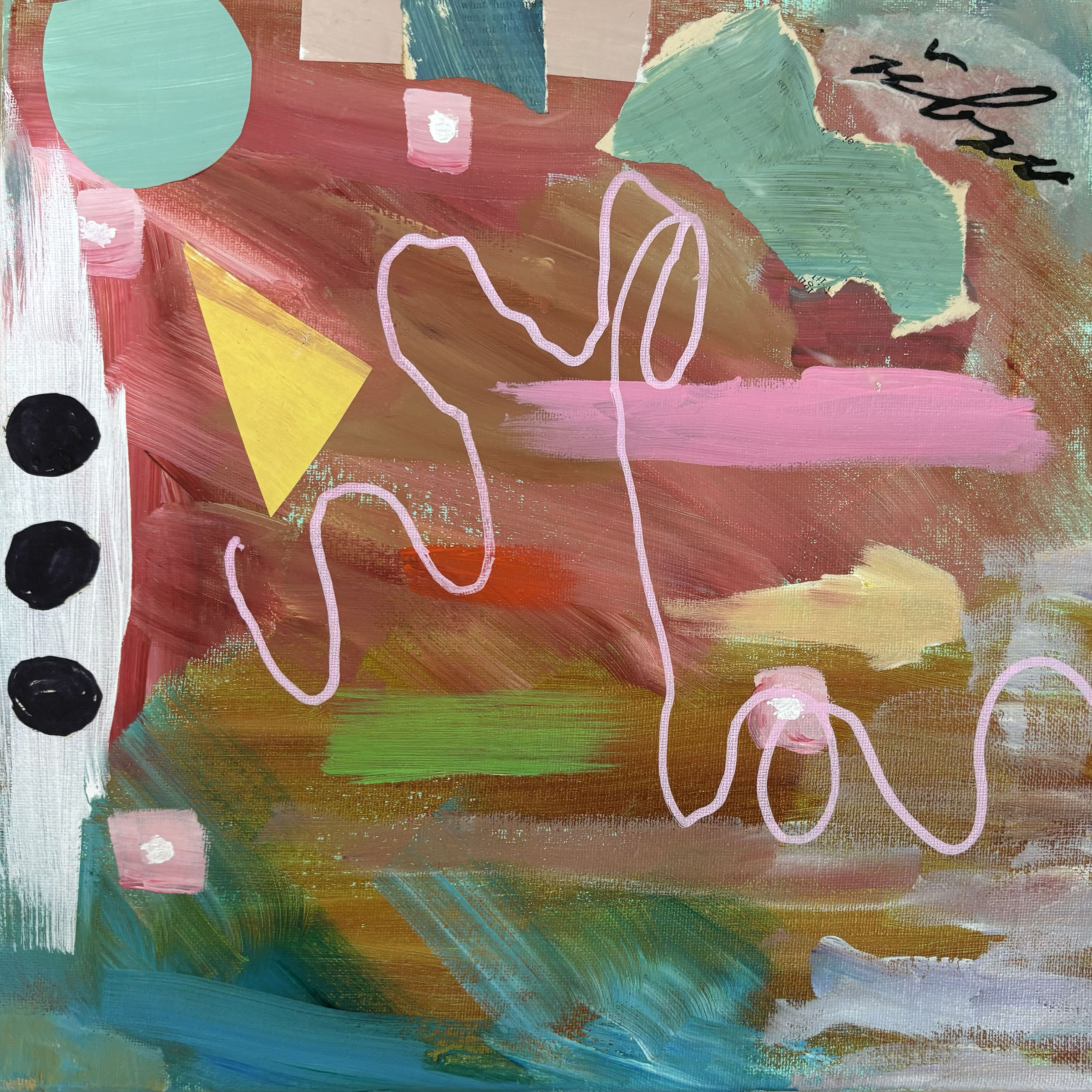 0042 Abstract Geometric Rainbow of Color and Shapes II 36x48” original mixed media acrylic on canvas