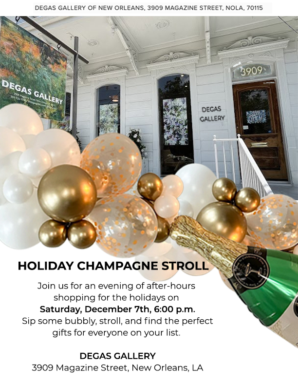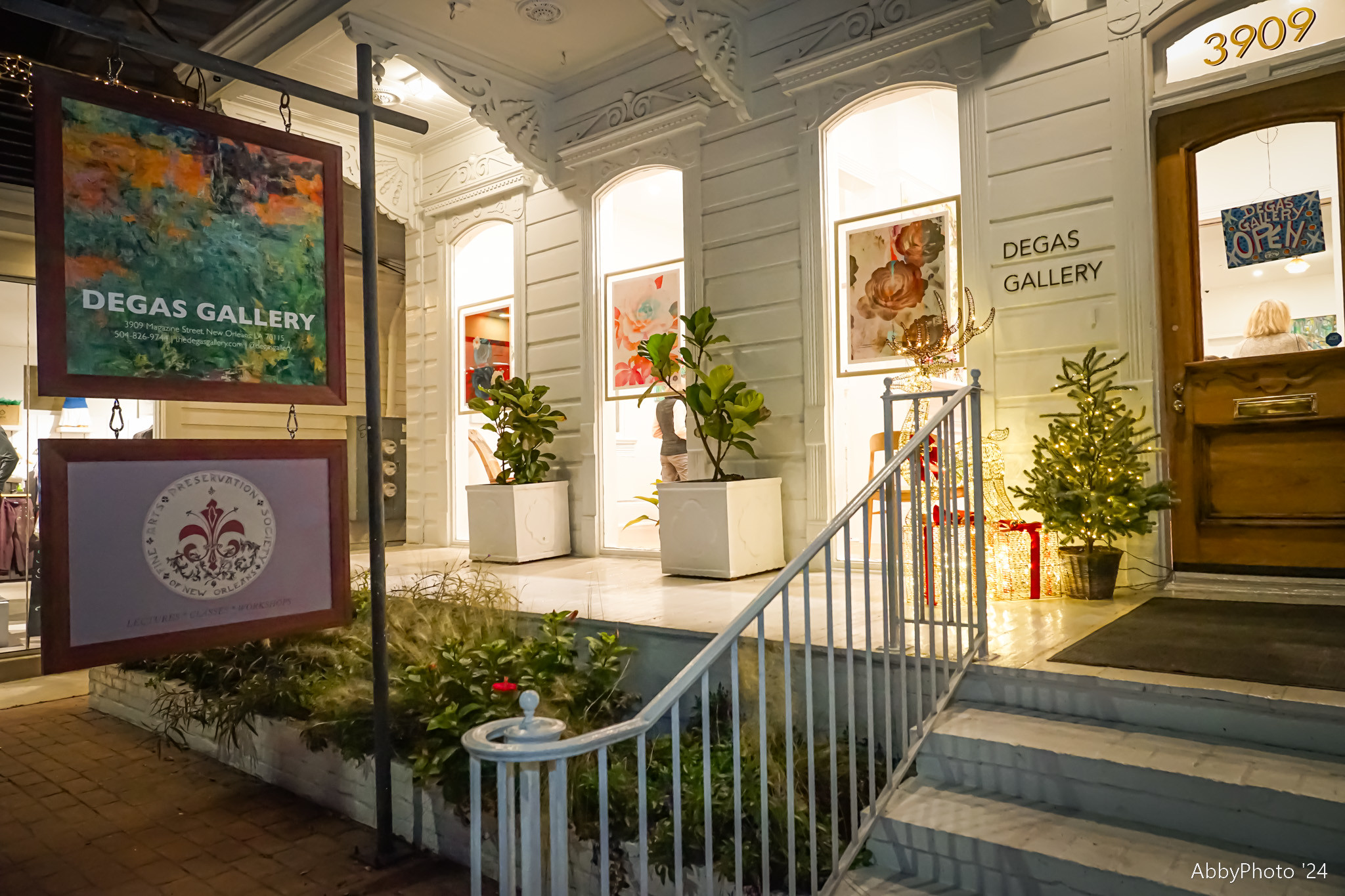 Lovely night last Saturday for the Holiday Celebration Magazine Street Art Walk where Degas Gallery featured Camellias and other artists including Brenda Breck of Brenda Breck Art who has her artwork featured on this month’s cover of Inside New Orleans Magazine